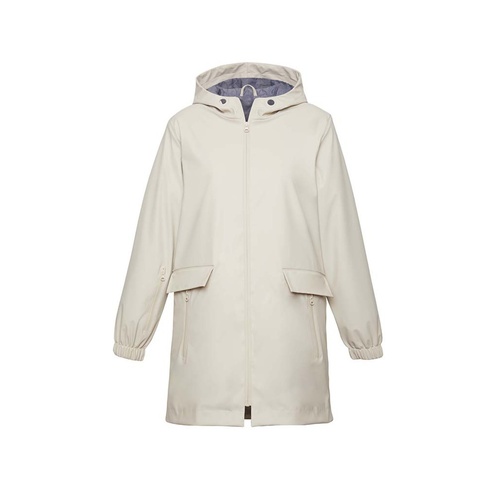 Curved back hem and casual silhouette. Cotton lining through the body, with 2 flap pockets and 2 zip pockets on both sides. Zip pocket on RHS sleeve. Seam sealed throughout body (neck and hood sealed on reverse) and waterproof zips.