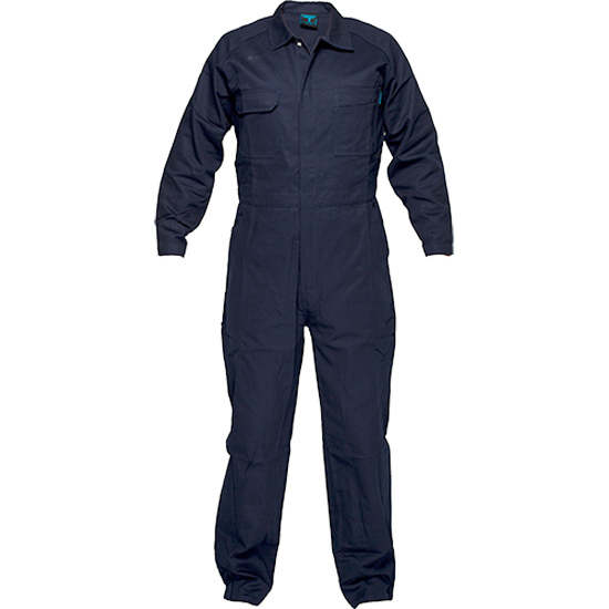 100% Pre shrunk Regular Weight Navy Cotton Coveralls.