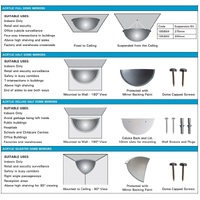 Quarter domes are discreet and fit between the ceiling and corner junction of 2 walls and provide 90-degree vision horizontally and directly below the mirror.