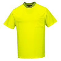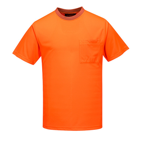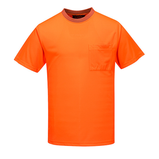 Hi-Vis Breathable Micro Mesh single toned short sleeve t-shirt.No buttons and single breast pocket.Texpel treatment to protect from staining lock in brightness and keep fabric cool.