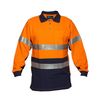 Two-tone 100% cotton Pique Long Sleeve Polo with HiVisTex tape.3 Button closure left chest pocket and cuff sleeves.