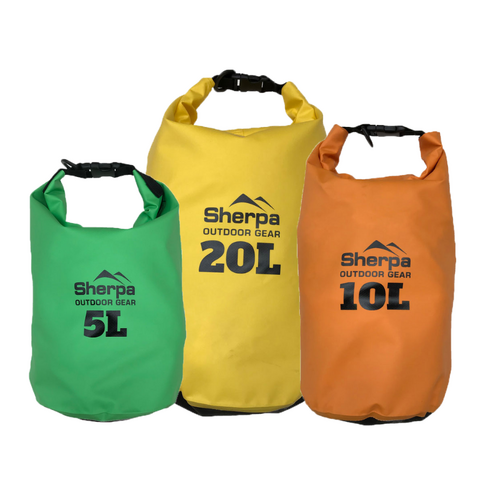 The Sherpa dry bag set allows you to be prepared for any weather and every adventure. Perfect for kayaking, canoeing, hiking and travel the Sherpa Dry Bags are 100% waterproof and will keep your gear dry and protected no matter the conditions. Store your electronics, valuables, clothing, food and more in a Sherpa dry bag for ultimate protection from the elements. Our dry bags are tried and tested in extreme conditions to ensure superior performance for our customers.